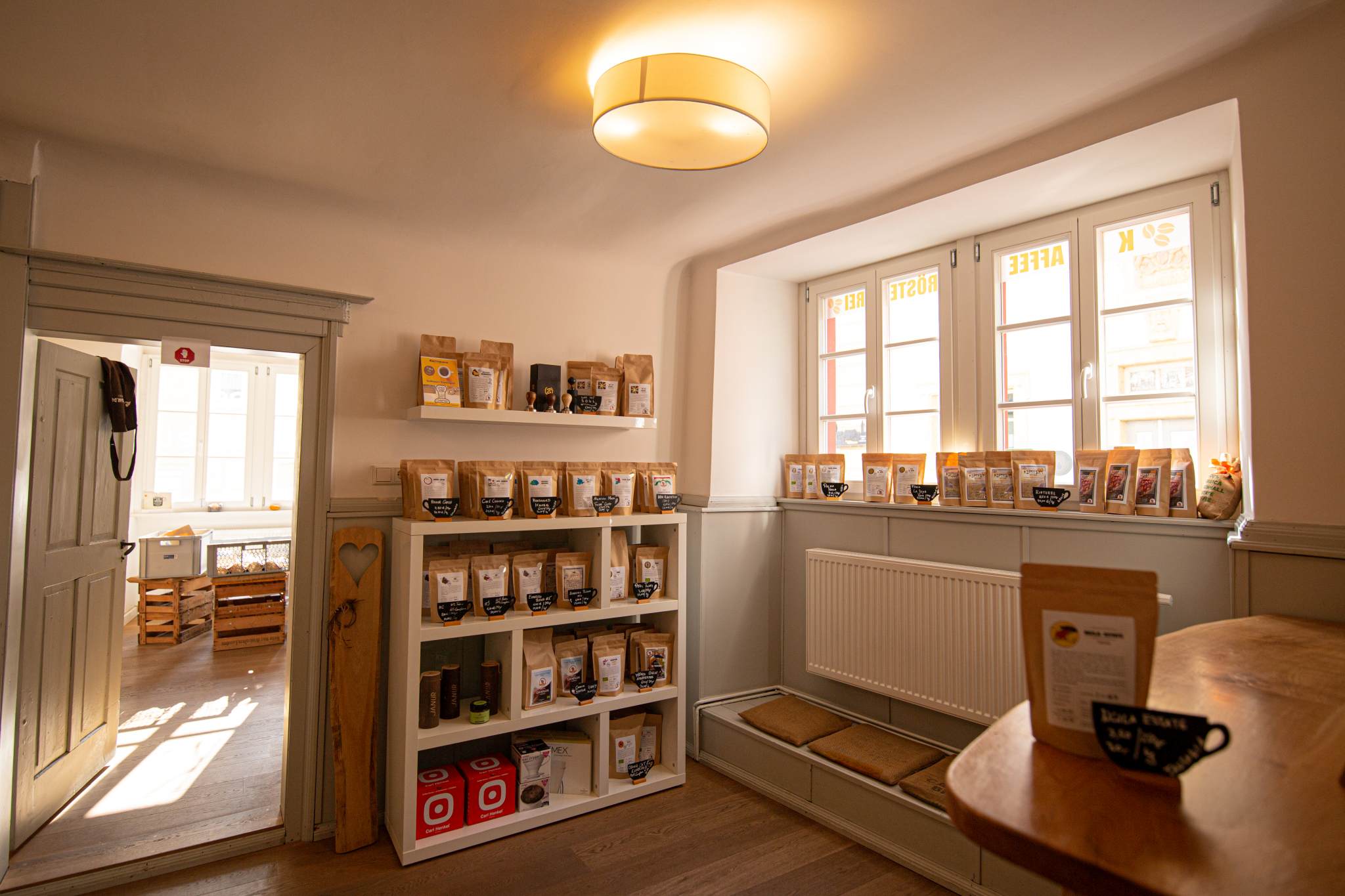 Unser Laden ist das Herzstück der Röstfreunde. Dort kommt alles zusammen. Der Kaffee, die Begeisterung, die Freude, die Gespräche, Seminare, Kurse, Feiern, Hochzeiten. Freundschaften sind entstanden und Eheschließungen wurden gefeiert. Seit dem Auszug der Produktion bieten wir Euch in der kalten Jahreszeit einige Sitzplätze innen. Im Sommer geht es in den wunderschönen Innenhof. Hier sind wir für Euch da.