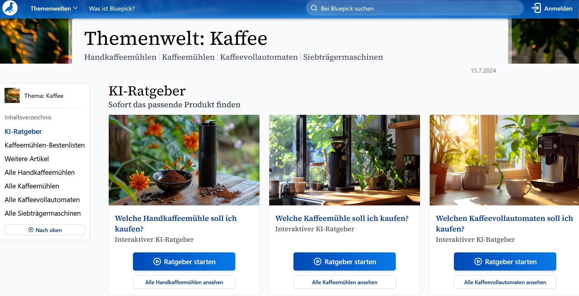 Die Themenwelt Kaffee auf Bluepick.de ist in verschiedene Kategorien unterteilt, die jeweils ihre eigenen Schwerpunkte und Besonderheiten haben: